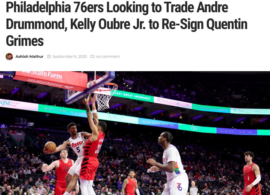 根据美记Jake Fischer报道,76人队可能在训练营开始之前交易掉德拉蒙德和乌布雷中的一位,或者两人一同被交易。