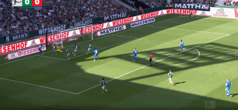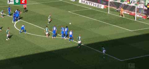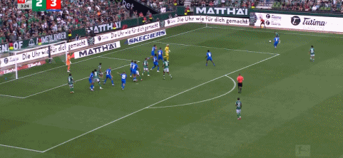 第43分钟,姆班古拉造点,施密德操刀点射命中,不莱梅1-2