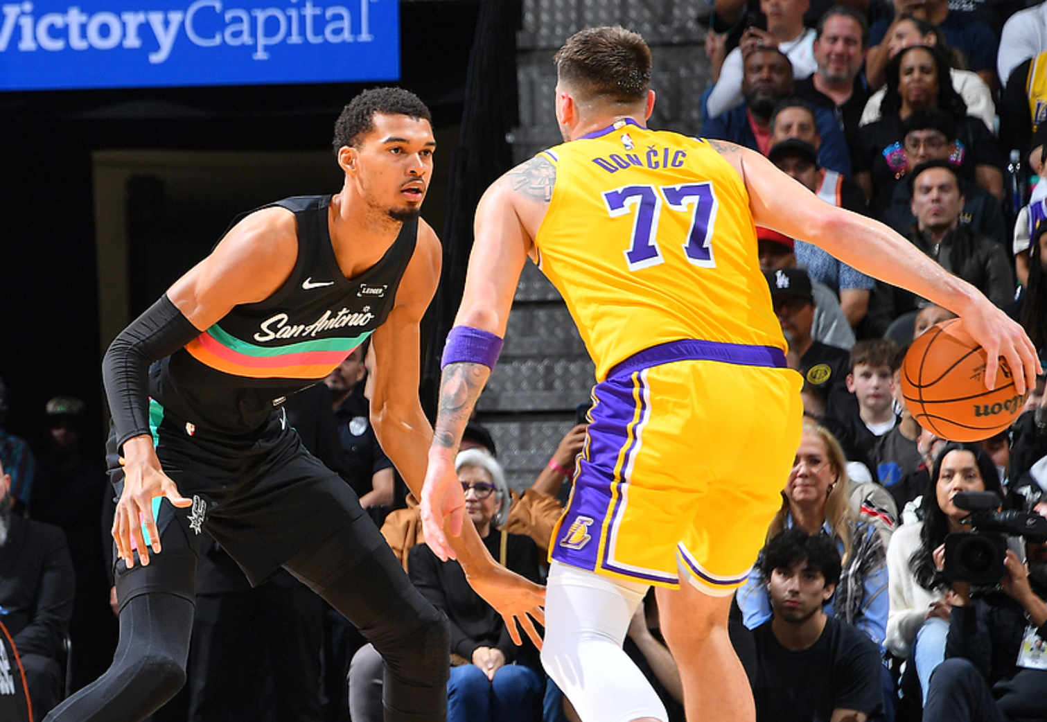 马刺主场迎战湖人,双方都是背靠背作战,马刺少了瓦塞尔,湖人少了詹姆斯、里夫斯、八村,马刺全场压制湖人,最终以16分优势赢下比赛。凯尔登13中11得到27分6板,文班15中7得到16分14板2助2断4帽,湖人方面东契奇26中13得到38分10板10助3断,拉拉维亚13中6得到16分7板。